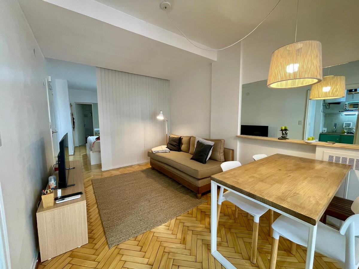 Estudio para dos huéspedes en una de las mejores ubicaciones de la ciudad. El departamento es muy luminoso. Contiene todo lo necesario para una excelente estadía. Perfecto para parejas, amigos, familias y viajeros de negocios. Cerca de áreas comerciales, bares y restaurantes. Diseñado por viajeros ... para viajeros. Studio for two guests in one of the best locations. The apartment has a lot of natural light. Recently refurbished, in very good conditions. It has all you need for a pleasant stay.