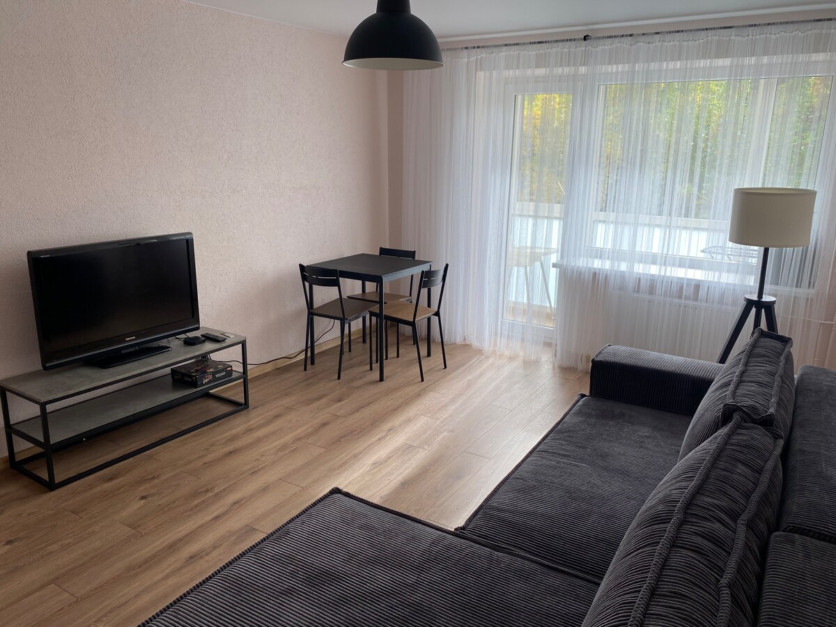 Apartamento de nuevo diseño, limpio y acogedor en Druskininkai. Cuenta con 1 dormitorio y un amplio sofá cama en la sala de estar, TV de pantalla plana, cocina equipada y baño espacioso. Se encuentra en una zona céntrica pero tranquila de Druskininkai. Ofrece wifi gratuito y rápido. Hablamos lituano, inglés y ruso.