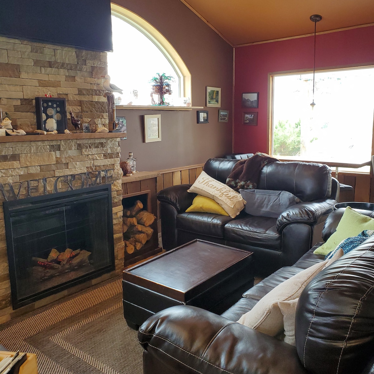 Esta joya arquitectónica con ventanas de vidrio envolventes da la bienvenida a los huéspedes con su interior informal de diseño único ubicado en 7 acres privados de bosque. Acurrúcate alrededor de la chimenea de leña con ventanales del suelo al techo como telón de fondo, o siéntate en la amplia terraza alrededor de la hoguera contemplando las estrellas. Utilízalo como base para las maravillosas actividades culturales y al aire libre de la zona, o disfruta de la naturaleza con lujo sin salir de casa. *Reserva entre semana para obtener tarifas con descuento. IG: @midcenturyoctagon