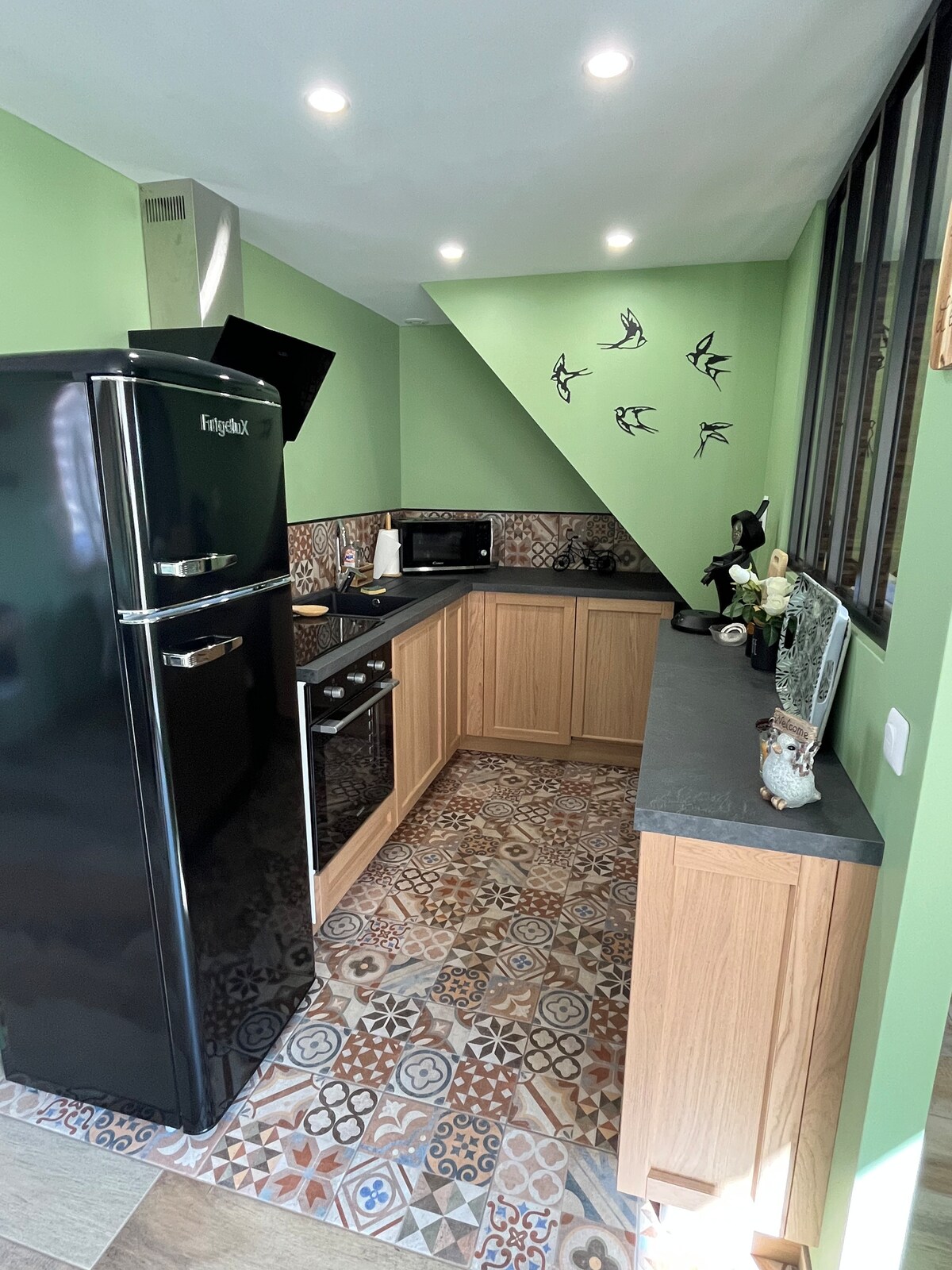 Le daremos la bienvenida con total sencillez, al lado de nuestra casa, en un estudio moderno, apartado de la calle, para una estancia tranquila. Encontrará una cocina equipada, una cómoda cama de 160x200, una ducha a ras de suelo y un inodoro separado. Podrá pasear por el jardín de unos 300 m2, que he convertido en un minijardín Bosque comestible. Y para mayor placer, ¡puedo ofrecerle una cesta de desayuno para disfrutar aún más del momento!