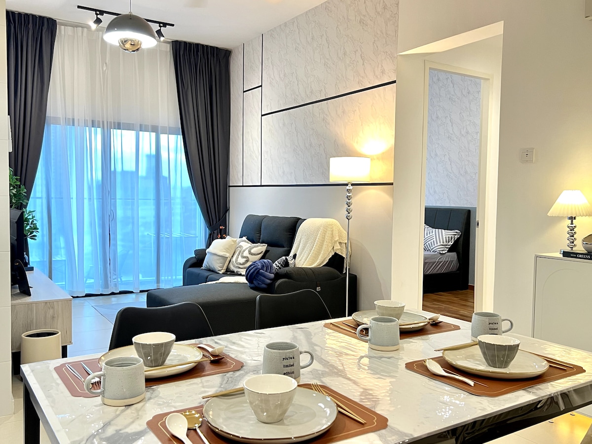 StarSuiteAC: ¡Alojamiento de lujo sobre las nubes! Un dúplex lujosamente diseñado en el piso alto, que ofrece una impresionante vista en la alfombra de las nubes del horizonte de Kuala Lumpur. ¡Relájate bajo el techo estrellado parecido a una galaxia y experimenta una escapada como ninguna otra! Disfruta de una sala de karaoke insonorizada, billar y hockey de aire, y un cine en casa con sonido envolvente para una verdadera experiencia cinematográfica. Instalaciones: cocina, nevera, microondas, olla arrocera, freidora de aire, filtro de agua, lavadora (con secadora), sillón de masaje, etc.