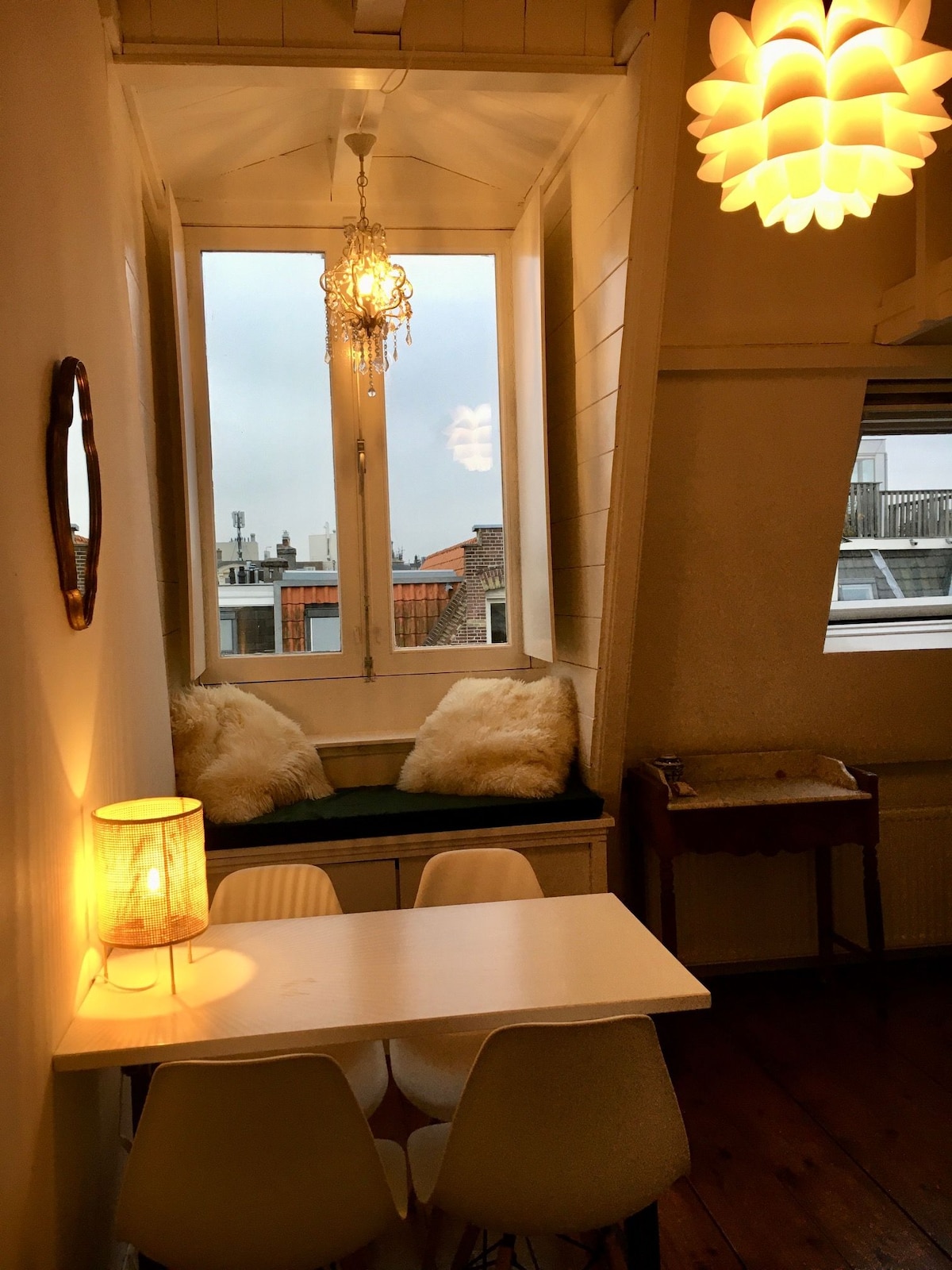 Transformé este «ático de heno del siglo XIX» en el segundo piso en una casa cómoda (mi hijo de 16 años y yo vivimos aquí). Es muy ligero y espacioso. El barrio está repleto de delicatessen, bares y restaurantes. Rijks, Stedelijk, el museo van Gogh y los canales están a la vuelta. También lo son el alquiler de bicicletas, los cruceros por los canales, el Paradiso y el Concertgebouw. Es mi casa y mi estudio (soy diseñadora); cuando viajo, la alquilo en Airbnb.