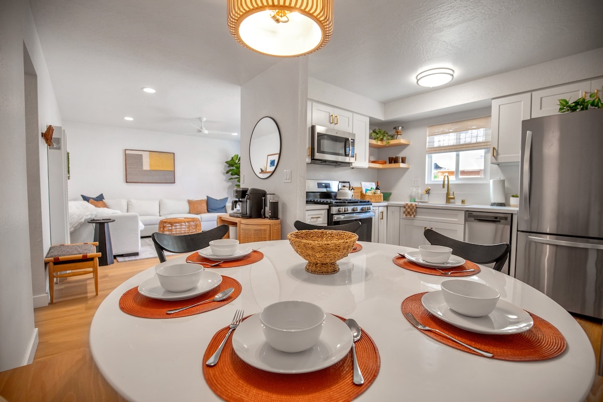 Escápese a la pura magia del sur de California en este encantador bungalow de estilo vintage, a solo unos pasos de la playa estatal de Corona del Mar. Disfrute de atardeceres épicos, practique surf o recorra las encantadoras tiendas, cafeterías y restaurantes de Flower Streets. Acogedor refugio de 2 habitaciones con espacios llenos de luz, camas cómodas y un relajado ambiente playero, perfecto para recargar energías o para pasar el atardecer con amigos. Todo a poca distancia: arena, pozas de marea, tacos y vida de pueblo. Su escapada relajada en CDM le espera