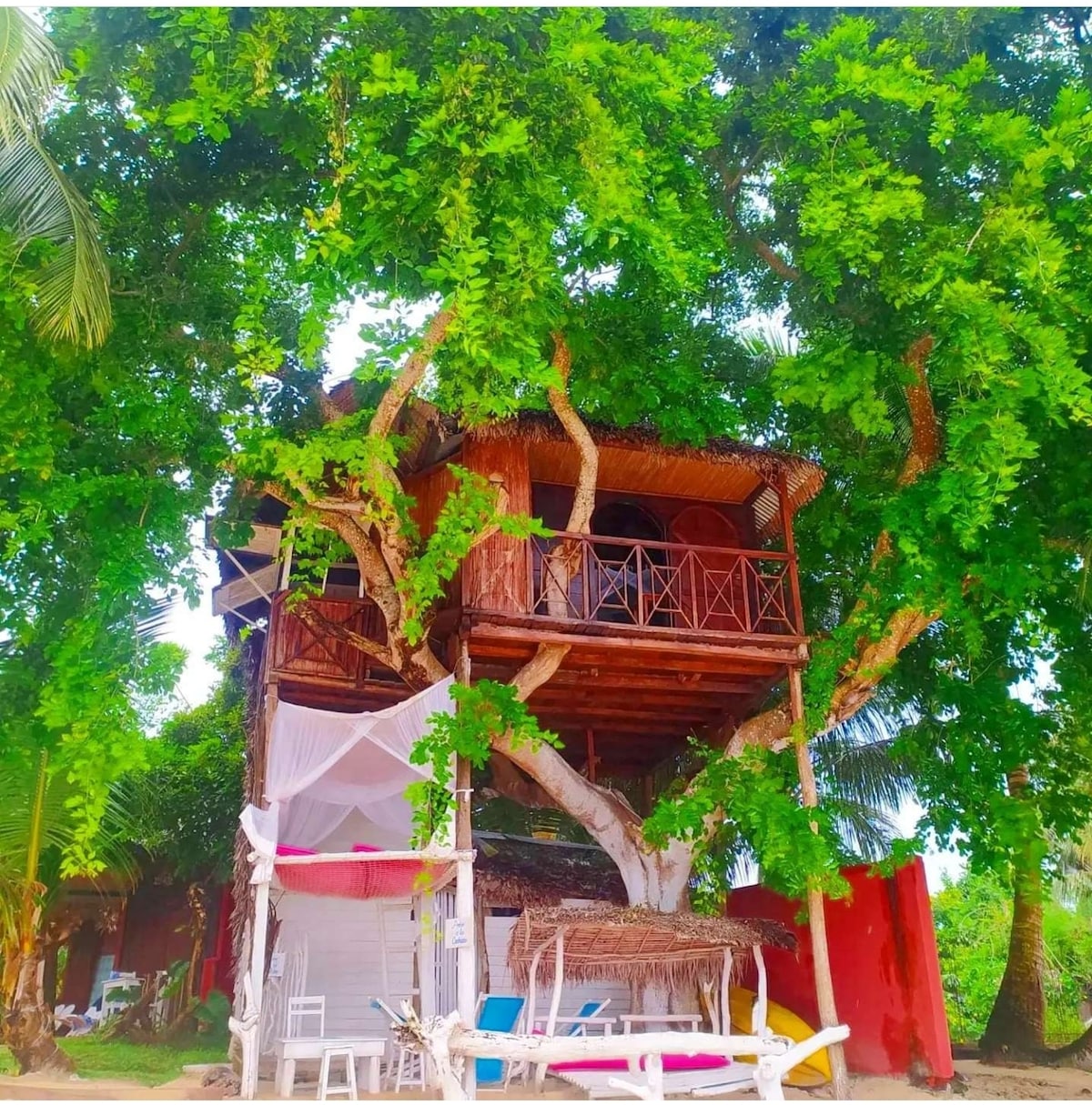 Casa en el árbol con vistas al mar en la playa.
