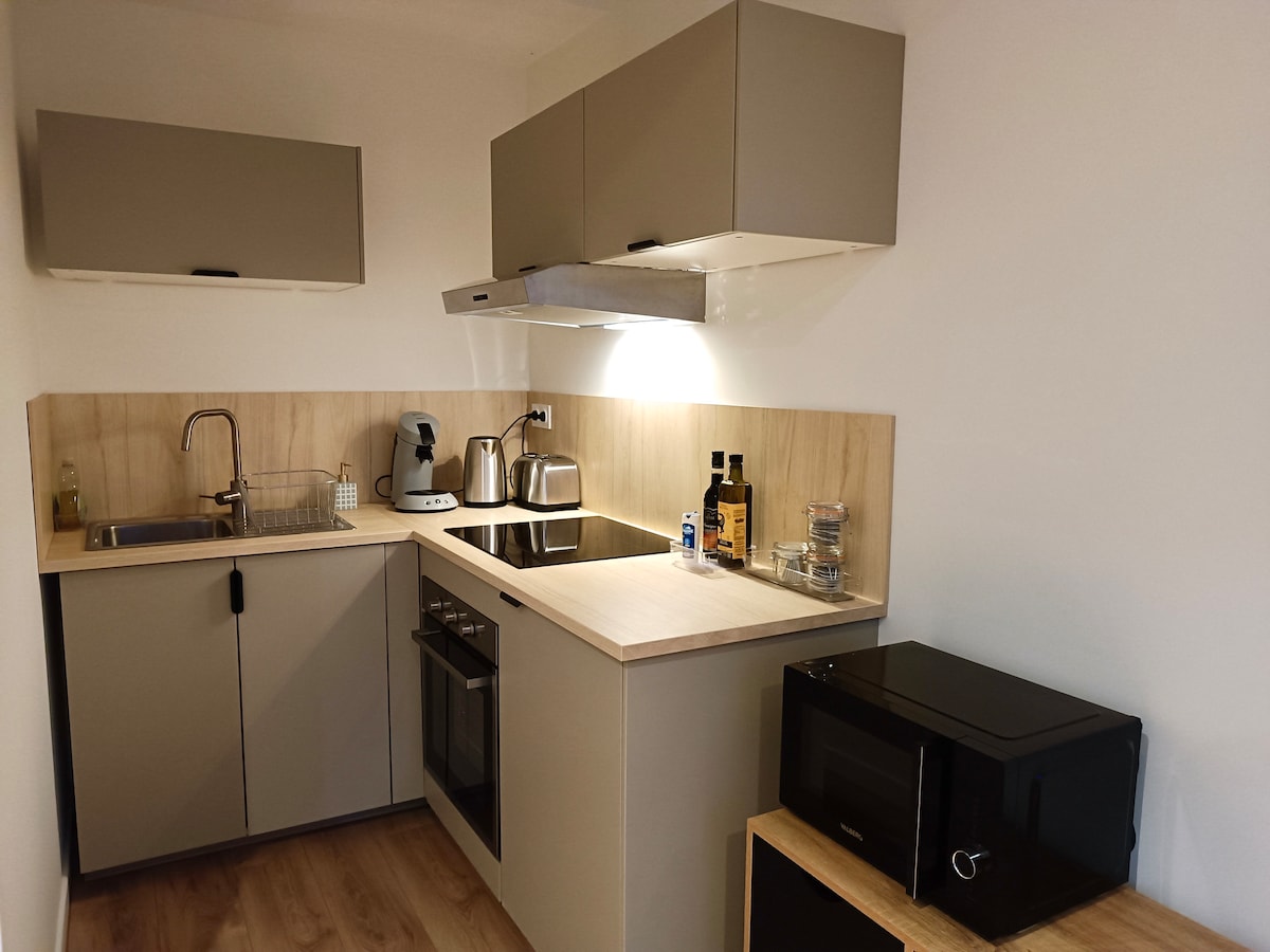 Nuestro alojamiento recién renovado de 33 m² tiene aire acondicionado y está a pocos pasos del encantador y histórico centro de Dijon. En un pequeño edificio separado detrás de nuestra casa, tendrás tu propia sala de estar/cocina, dormitorio separado y baño. Hay aparcamiento público gratuito en la calle frente a la casa. Estarás justo al lado del Palais des Congrès y el Auditorio, y a poca distancia en tranvía de la estación de tren, la universidad y el hospital. Cerca de supermercados y otras tiendas. También hablamos francés.