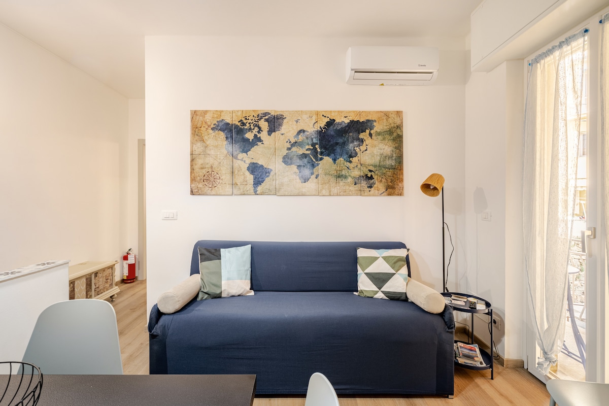 VISTA MARE SUPERBA! Vivi il tuo borgo di Liguria: ristoranti, bar, negozi, market sotto casa! PISTA CICLABILE! Spiaggia di fine sabbia a piedi, 3 minuti (ascensore pubblico gratuito). CENTRALISSIMA! Casa ad elevato standard di qualità: ogni comfort per farti sentire subito bene: arredo di livello, gusto elegante; climatizzata, curata in ogni dettaglio, pulizia impeccabile. Parking a disposizione. PRENOTA ORA, solo RELAX col mite clima in Riviera dei Fiori, Liguria. RIGENERATI!