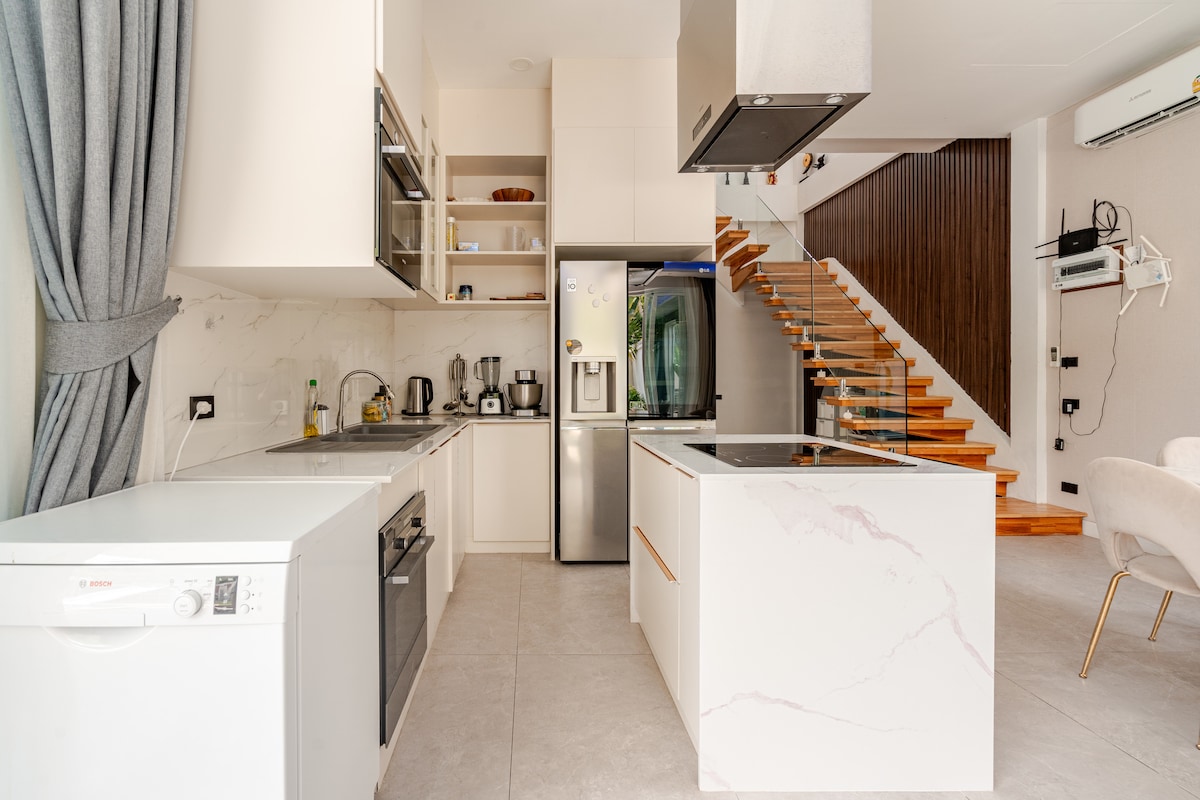 ✨ ¡Este nuevo apartamento moderno, perfectamente ubicado entre Bophut y la hermosa Chaweng, ofrece todo lo que necesitas para una estancia cómoda y memorable en el paraíso! ¡Ideal para parejas y trabajadores digitales! 💻 La habitación cuenta con una amplia zona de trabajo y un cómodo colchón de calidad hotelera para una noche de sueño reparador, además de una cocina totalmente equipada en caso de que te apetezca cocinar tu propio Pad Krapao. 🌶️ 🏝️¡Relájate en una de las piscinas más grandes de Samui y disfruta de nuestra nueva sauna y gimnasio!