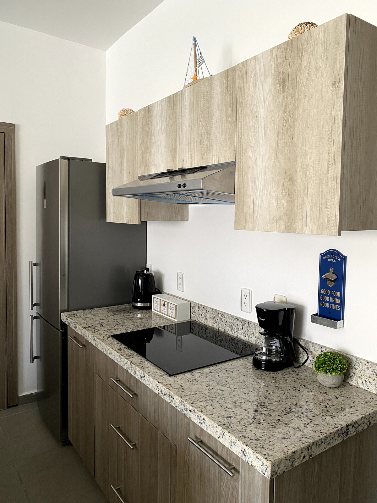 A 5 mins caminando de la playa Olas Altas y del Centro Histórico, donde encuentras los mejores restaurantes de comida regional e internacional y bares con un buen ambiente y relajado. Con aire acondicionado, WiFi y TV, muy luminoso y una decoración impecable, tiene todo para estar comodísimo después de un día de playa y turismo. Es ideal para parejas. Recomiendo ver el atardecer, pasear por el malecón o pasar un día en la playa. Te recomiendo cenar el la plazuela machado. A unos pasos del depto