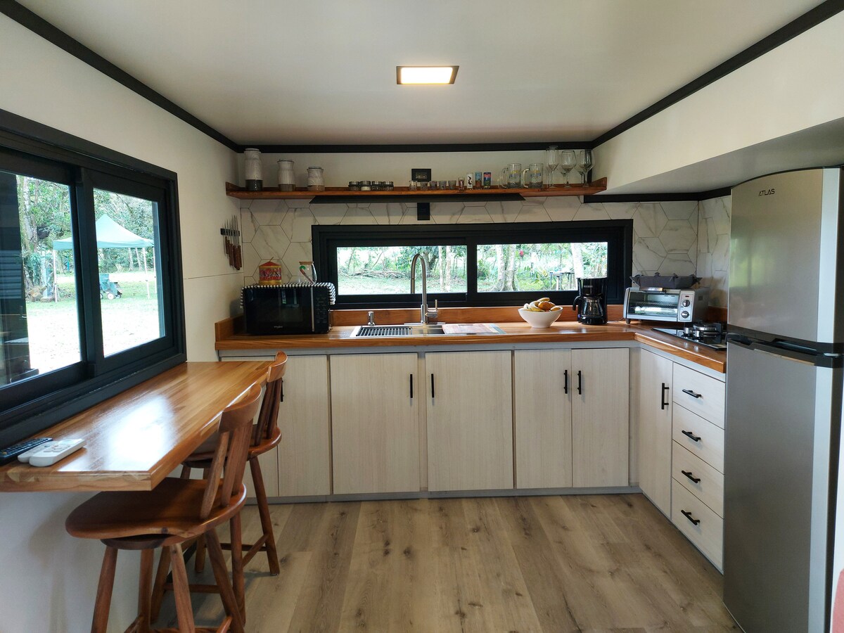 Retírate a la selva tropical en una cabaña de lujo acogedora, segura y moderna, construida para ayudarte a conectar con la naturaleza y contigo mismo. Disfruta de tu estancia con una cocina totalmente equipada, un increíble baño con ducha/jacuzzi personalizado y un diseño de dormitorio único. Explora los senderos privados de la propiedad con 10 acres de selva tropical primaria con tucanes, lapas, colibríes, mariposas y otra fauna. ¡Cuidado, es posible que no quieras irte! Situado en Venecia de San Carlos, a 65 km del aeropuerto SJO.