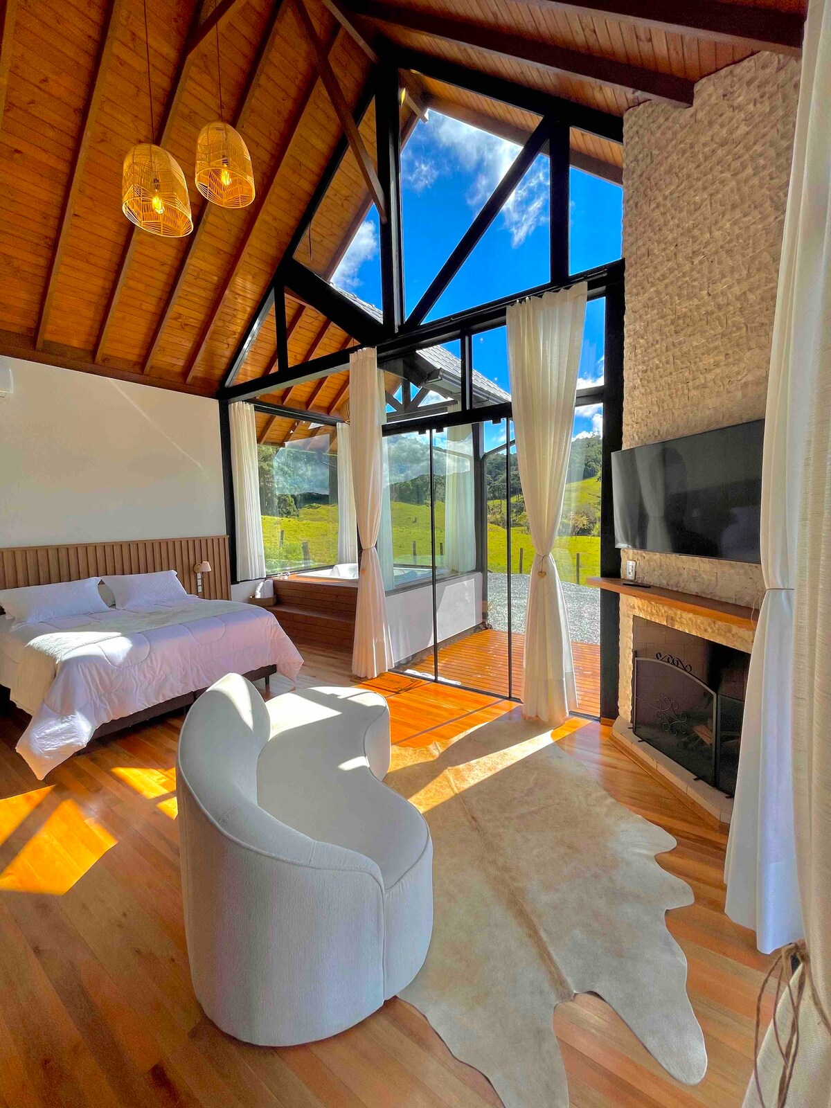 Un refugio rústico y exclusivo en el corazón del bosque de Rancho Queimado. Ubicada en un terreno privado de 30.000m², sin vecinos cerca, la casa ofrece privacidad total. Estamos a solo 4km del centro de lá ciudad. Solo se oye el viento entre los árboles y el canto de los pájaros. Con lago privado, deck panorámico, jardín japonés y cine al aire libre, es ideal para descansar, leer, meditar o simplemente no hacer nada. La Jungla te invita a desaparecer del mundo — por un tiempo.