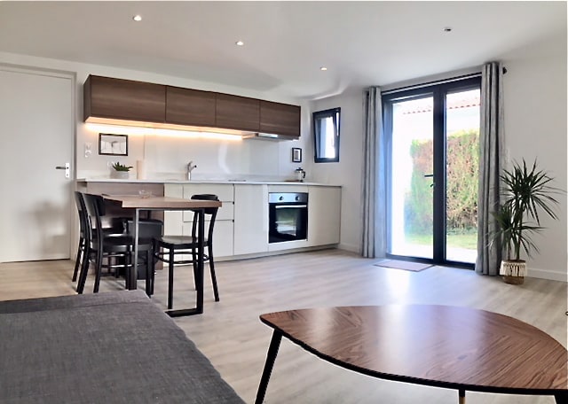 Anglet: Estudio reciente muy luminoso de 27 m2 , jardín privado de 150 m2 vallado sin vecinos. Cerca del bosque Chiberta. Acceso a pie o en bicicleta a 10 minutos de la playa. Se aceptan perros de gato a petición si se aprueba el animal debe registrarse al hacer la reserva del paquete de 15 € solicitado sin importar el número o la duración de la estadía. - grandLIT 160, TV, vestidor , techo catedral ventanal … - lavavajillas, horno,lavadora, secadora todo lo necesario en electrodomésticos - Ropa de cama incluida
