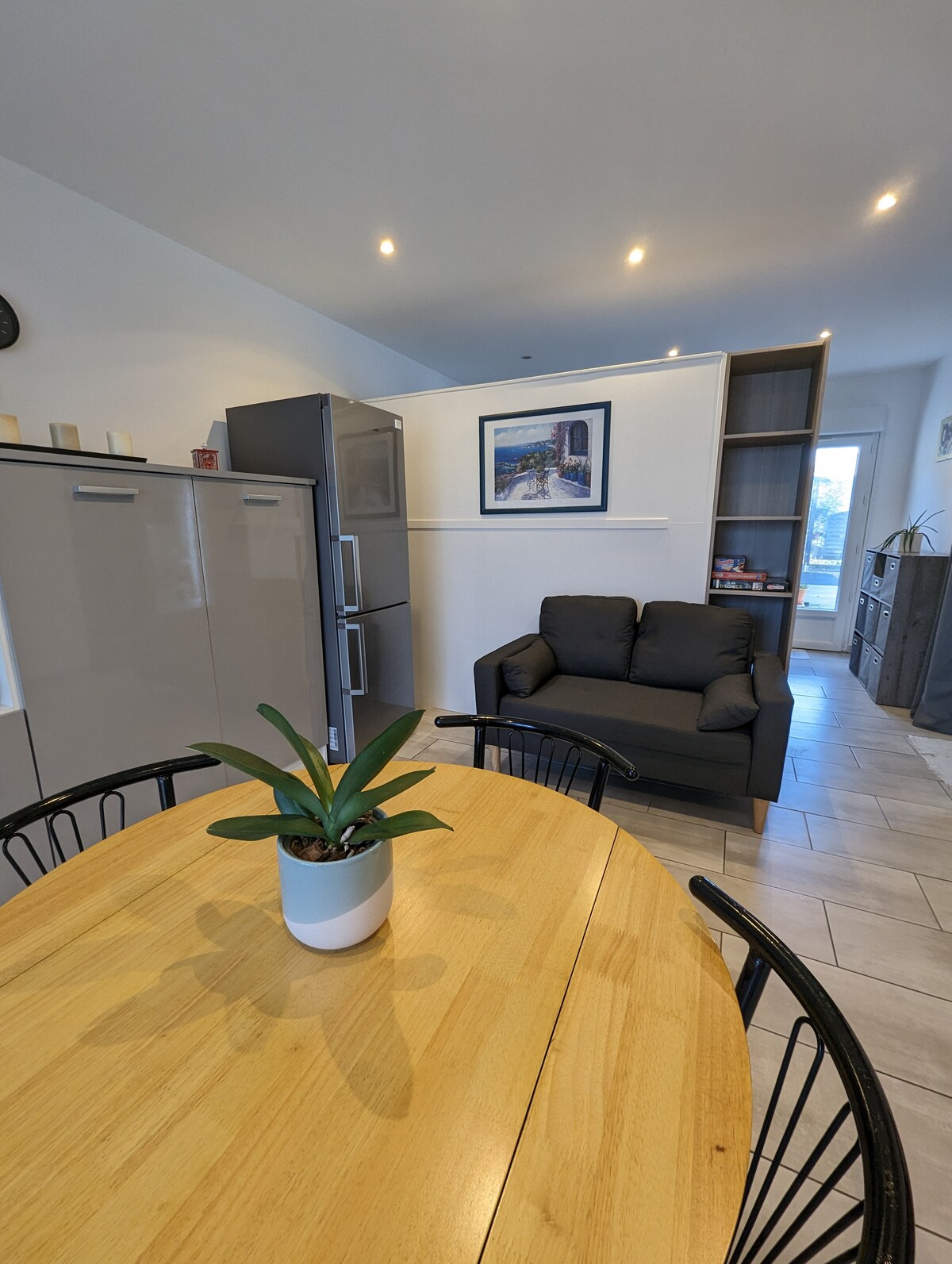 12mn la Rochelle, Chatelaillon , islas de Ré, Oléron, Aix, Fort Boyard, prox. tcces, 10 min vt. /2 Z.C. STD 24m² ds pabellón tranquilo, pueblo de La Jarne. Entrada independiente: salón/cocina, 1 cama 140, SD /WC. Vestidor, aparcamiento privado ext. pequeño patio 2 mesas, sillas y sillones, barbacoa eléctrica. Sombrilla. Preferencia por alquileres semanales. En temporada alta, mínimo 7 noches. Posibilidad de alquiler mensual después del 15 de septiembre. Ponte en contacto conmigo. No se admiten mascotas, no fumadores.