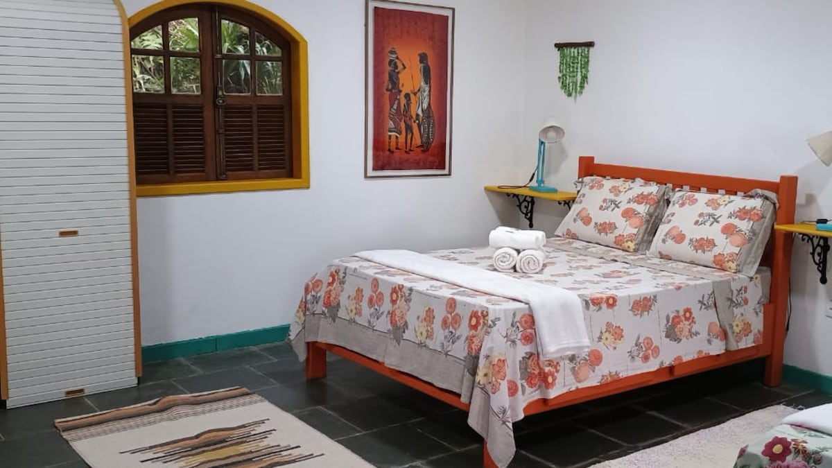Chalet de 2 plantas y mirador con vistas al mar rodeado por la Mata Atlántica. Hay 2 recámaras, oficina, deck superior con acceso al mirador, cocina equipada, sala de TV con Netflix, baño, patio trasero completamente cercado, regadera, asador y jardín con árboles frutales. Disponemos de Wi-Fi en toda la propiedad. Estamos a sólo 10 minutos del muelle y a 7 minutos de los comercios de Vila do Abraão. Aquí no es sólo alojamiento sino una experiencia de inmersión en la naturaleza :-)