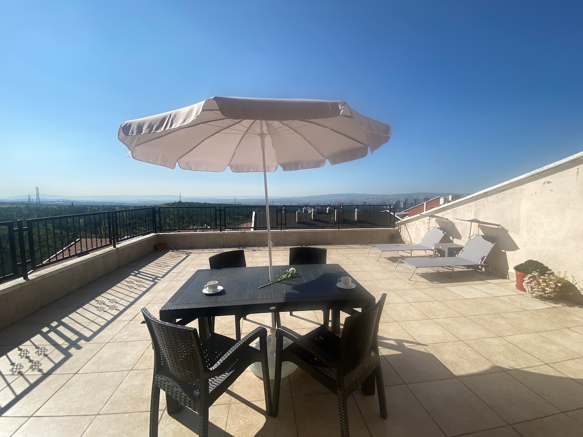 Está a 50 metros de New Castle-Starbucks y otras cafeterías, pubs y restaurantes en Çayyolu Dorapark. Tiene su propia puerta-cerradura, baño-wc, TV, sistema de sonido, cafetera, minibar, nevera, etc. Nuestra espaciosa y cómoda buhardilla de 60 m2 con 2 camas dobles está situada en una zona céntrica y tranquila entre zonas verdes. El metro está a 10 minutos a pie, y el Ring, autobús y las paradas de minibús están a 1 minuto. Nuestro jardín está disponible para eventos y celebraciones.🙏