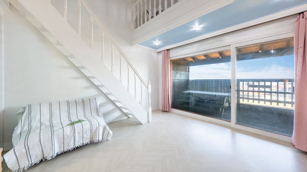 안면도 아기자기 복층, 작은 다락,개별테라스,잔디밭.