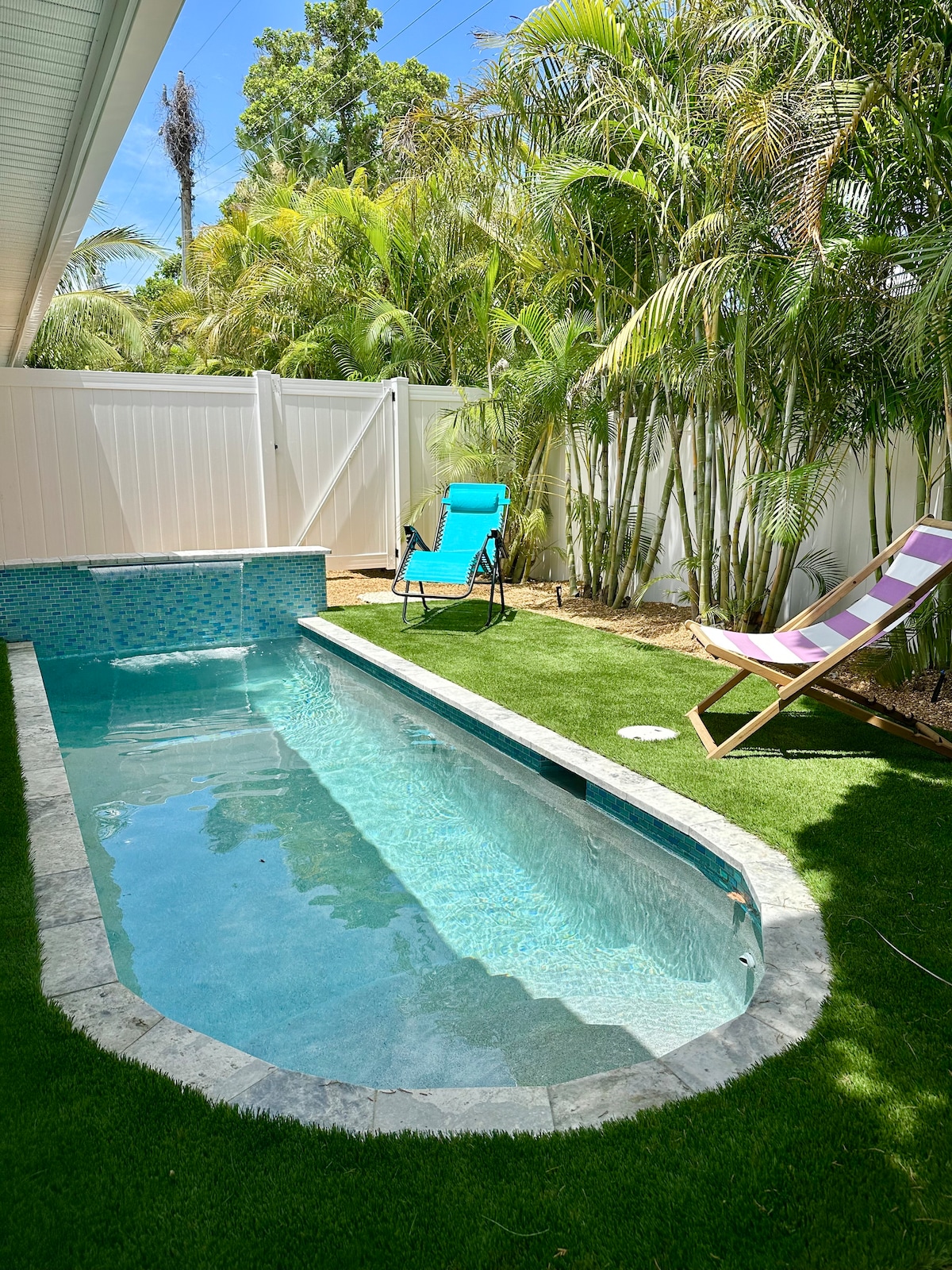 This stylish and light home offers single-level private accommodations. The recently updated interior and private backyard oasis with plunge pool offers the perfect space for a truly relaxing and enjoyable vacation. Inside, the stylish and comfy space has room for everyone to spread out and relax while enjoying the two flat screen TVs. No expense was spared in designing and furnishing this home. The sleeper sofa pulls out to a memory foam queen bed, meaning the cottage can comfortably sleep 4.