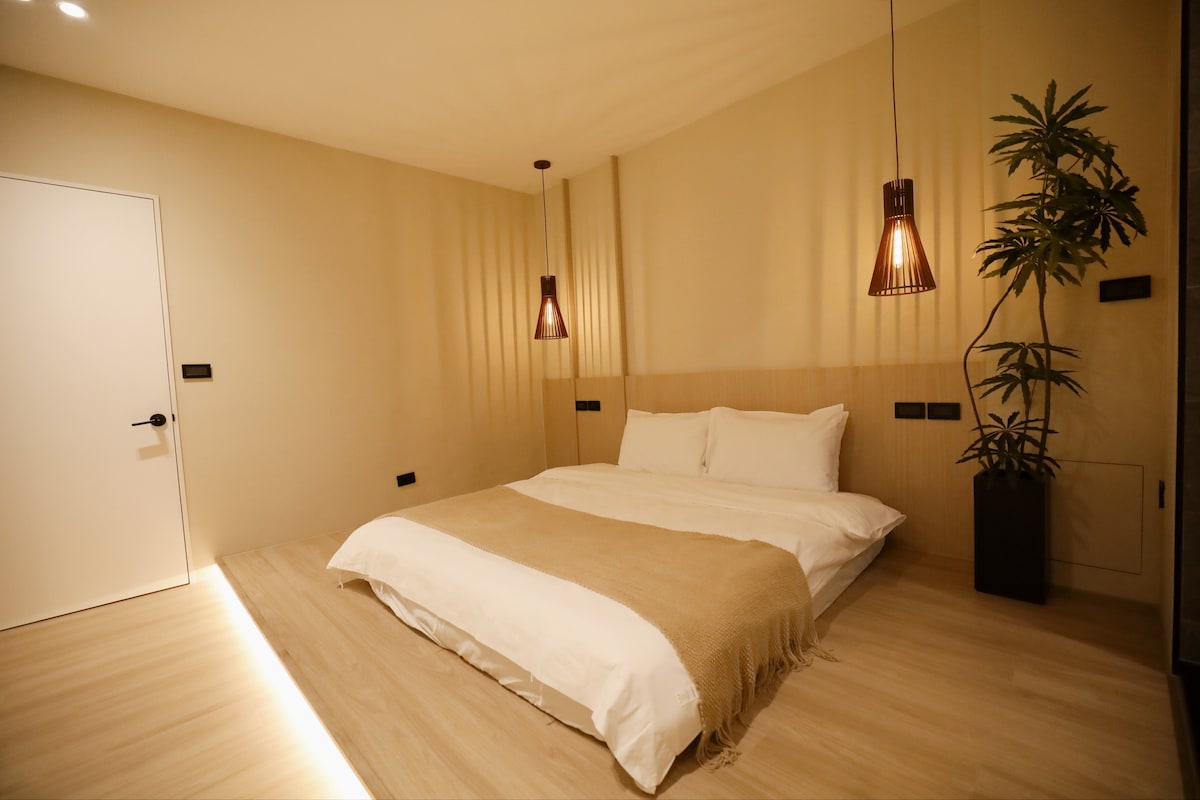 Nueva finalización de 2024 Alojamiento en casa con ascensor. El balcón con baño propio no es compartido Estamos ubicados en el centro de la ciudad de Tainan Cercano a Success Road en Chung Yi Road Sopa de ternera famosa, gachas saladas, supermercado cercano A unos 5 minutos en coche del mercado nocturno Garden. A unos 5 minutos de la estación de tren de la ciudad de Tainan. Está a unos 15 minutos en auto de Anpei. TV 4th Calefacción y refrigeración Aire acondicionado Secador de pelo Botella de agua caliente Nevera de dos puertas Toallas Champú gel incluido Esta es una suite con cama matrimonial (el balcón del inodoro está en el dormitorio). Las camas adicionales se cobrarán el doble para los huéspedes adicionales en el día Confirma el número de personas en el momento de la reservación Si tiene alguna pregunta, pregunte primero. Gracias.