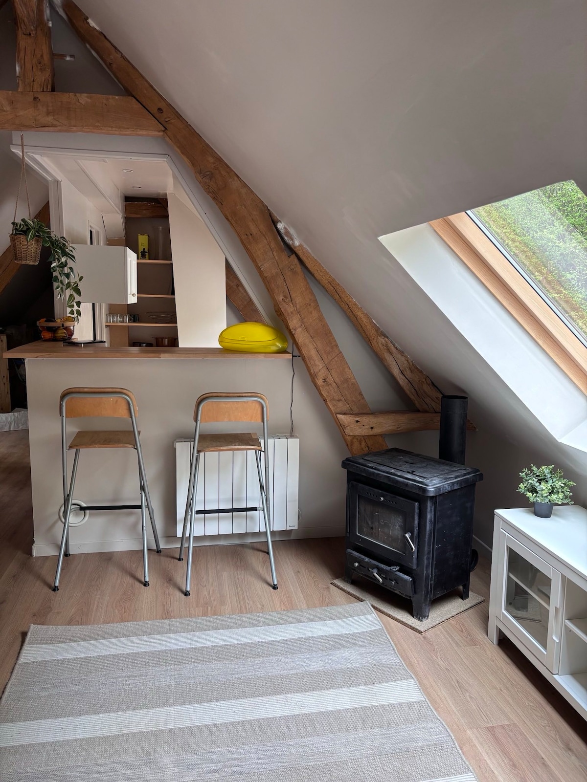 Encantador horno de pan antiguo con entramado de madera, situado a orillas del arroyo, consta de: - Sala de estar con estufa de leña, - Cocina, - En la planta superior: -cuarto de ducha/WC accesible por una escalera de molinero (ver fotos), -habitación con una cama de 160x200 con vistas al arroyo, accesible por una escalera de molinero (ver fotos), El dormitorio y el baño no están comunicados. Muebles de jardín, barbacoa, aparcamiento privado, leña incluida Nota otra casa, la Casa de piedra, está a 100 m