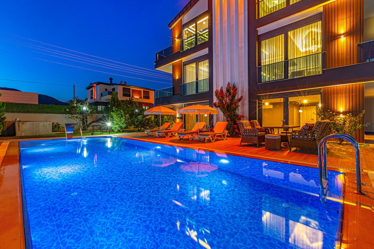 Olvídate de tus preocupaciones en este espacio espacioso y sereno. Villa Solaris es una escapada especial en Antalya donde el sol y la paz se encuentran. Mientras hace que sus vacaciones sean inolvidables con sus amplios espacios de estar y su estructura cuidadosamente diseñada, se alejará del ajetreo y el bullicio de la vida y tendrá una experiencia agradable. Aunque su tranquila ubicación ofrece privacidad, puedes llegar a las playas y a la energía de la ciudad con un corto viaje. Aquí experimentarás lujo y libertad.