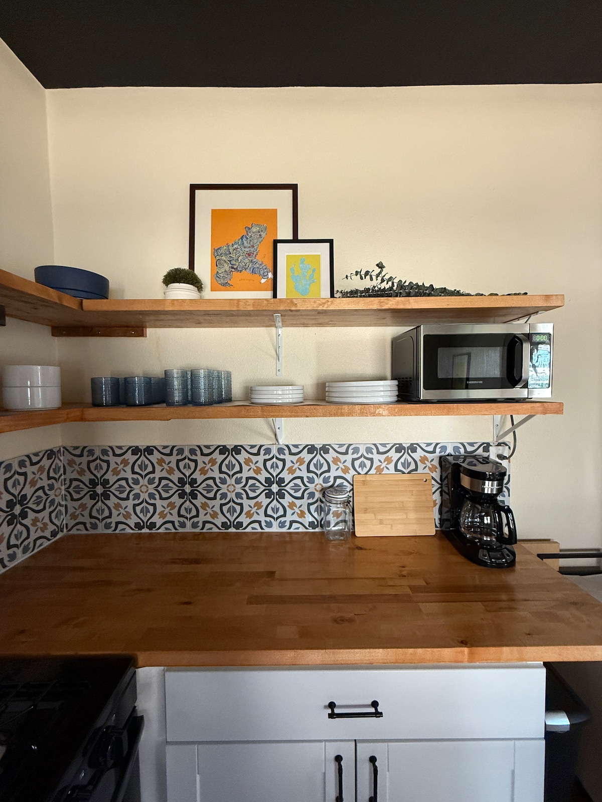 Casita del Arco is a bold and charming one-bedroom duplex in Central El Paso, named for its stunning arched window and desert views. Thoughtfully restored, it blends original details with playful, modern design—vaulted black ceilings, original tiled fireplace, and bright accents throughout. Walk to Memorial Park and the Rose Garden, or relax in this sunny, artful space with a private entrance and shared front porch. If you're traveling with friends check out our adjacent unit, Casita Tierra Rosa