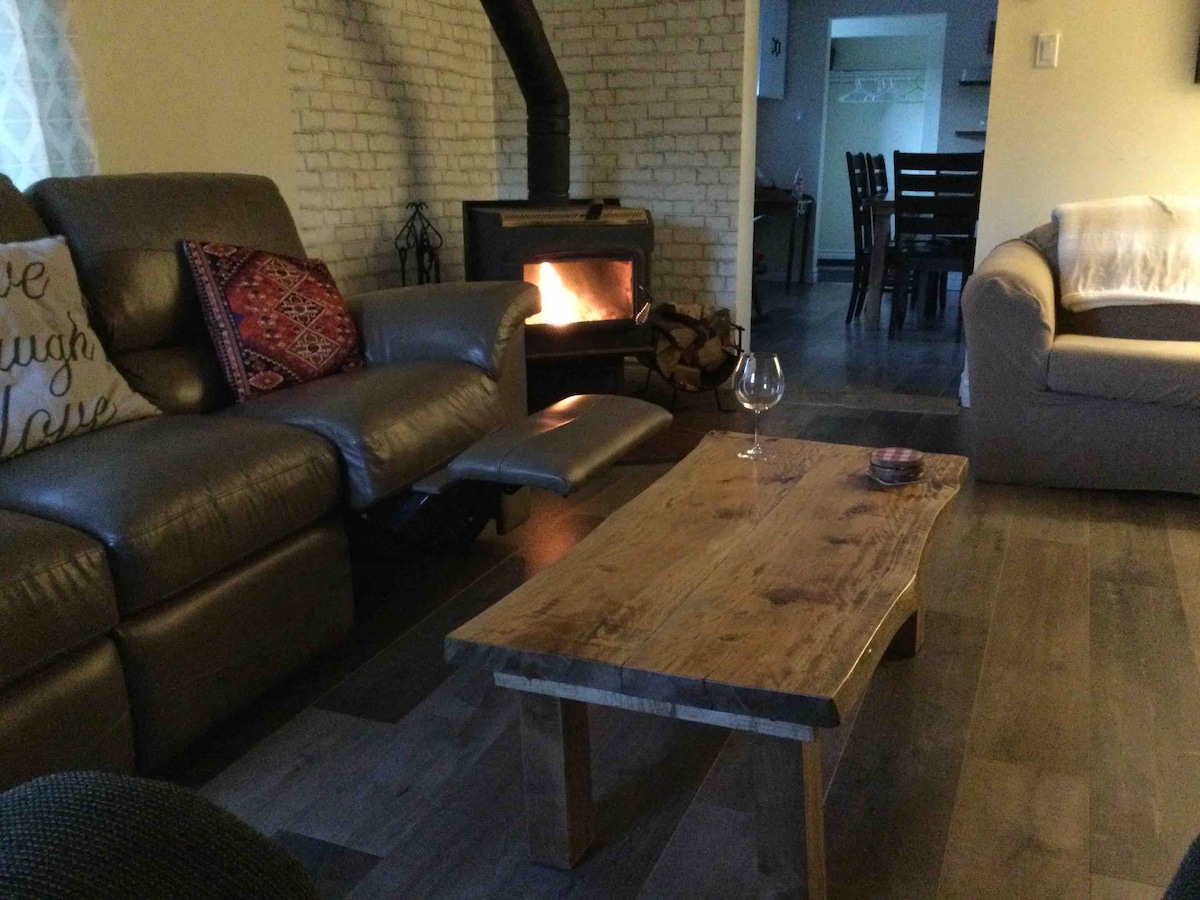 Disfruta de todas las comodidades de tu propio hogar en tus próximas vacaciones en el campo. Luminoso, acogedor, privado y rodeado de naturaleza. Camina, monta en bicicleta, todoterreno o moto de nieve por el camino privado que atraviesa nuestro terreno de 150 acres o relájate en nuestra espaciosa casa recién reformada, que ofrece 3 dormitorios, 2 baños completos y una cocina totalmente equipada. En el exterior encontrarás un gran patio, un pozo de fuego y una sala de proyección de 12x19 construida recientemente. Se admiten mascotas por una tarifa de limpieza adicional.