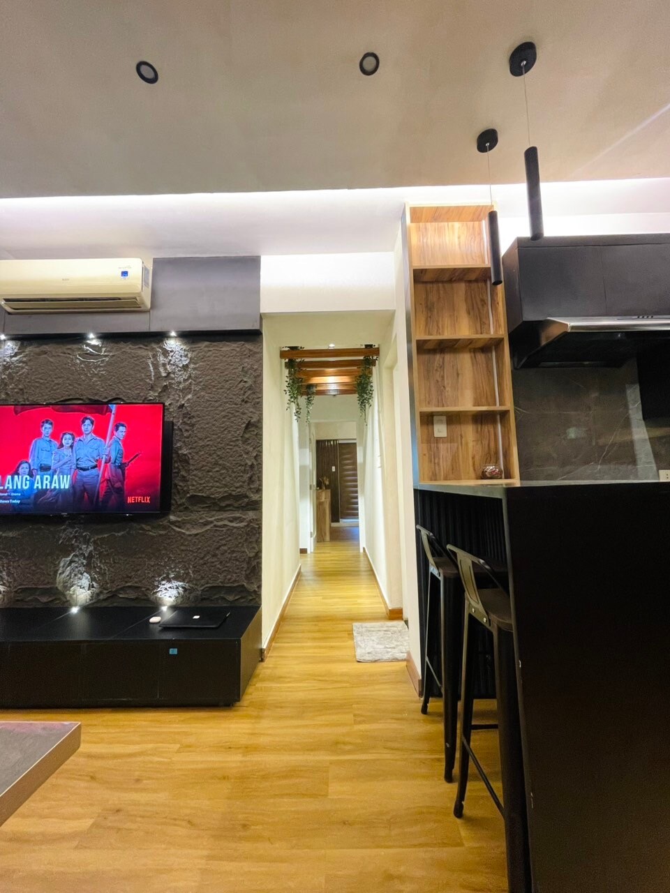This unit features QLED 55" smart TV with sound bar, stylish bathroom, smart lock system, king-sized bed, and coffee machine with complimentary coffee pods. It also has a 200-Mbps Wi-Fi speed and HBO Max, Disney+, Amazon Prime Video subscription. Amenities: Swimming Pool (26th Floor) – Open daily from 7:00 AM to 10:00 PM (Closed on Tuesday due to general cleaning) Fitness Area / Gym (RD Floor) – Open daily from 6:00 AM to 10:00 PM