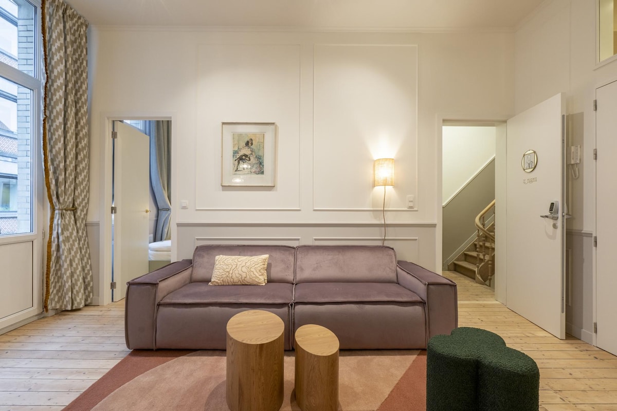 Welcome to your bright Antwerp duplex overlooking Vrijdagmarkt - a warm, spacious stay in the heart of the city, perfect for relaxing after a day of exploring. - Sleeps 4 | 2 bedrooms | 2 beds | 1 bath - 120 m² duplex w/ large windows & city views - Open kitchen & spacious living area - Dedicated workspace & wifi - Pet-friendly - Self check-in via keypad & central location