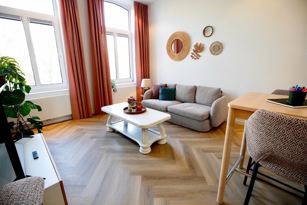 Un apartamento muy espacioso en un edificio histórico, equipado con todas las comodidades modernas. Encontrarás todos los servicios necesarios para una estancia de lujo: aire acondicionado, wifi rápido, TV con Netflix y una cocina equipada. Situado en el centro histórico, en el moderno Sint Paulusplaats, a tiro de piedra de los muelles de Scheldt y Grote Markt, el MAS, las calles comerciales y con todos los lugares de interés a pocos pasos. Tu apartamento está en la 1.ª planta y se accede por escaleras.