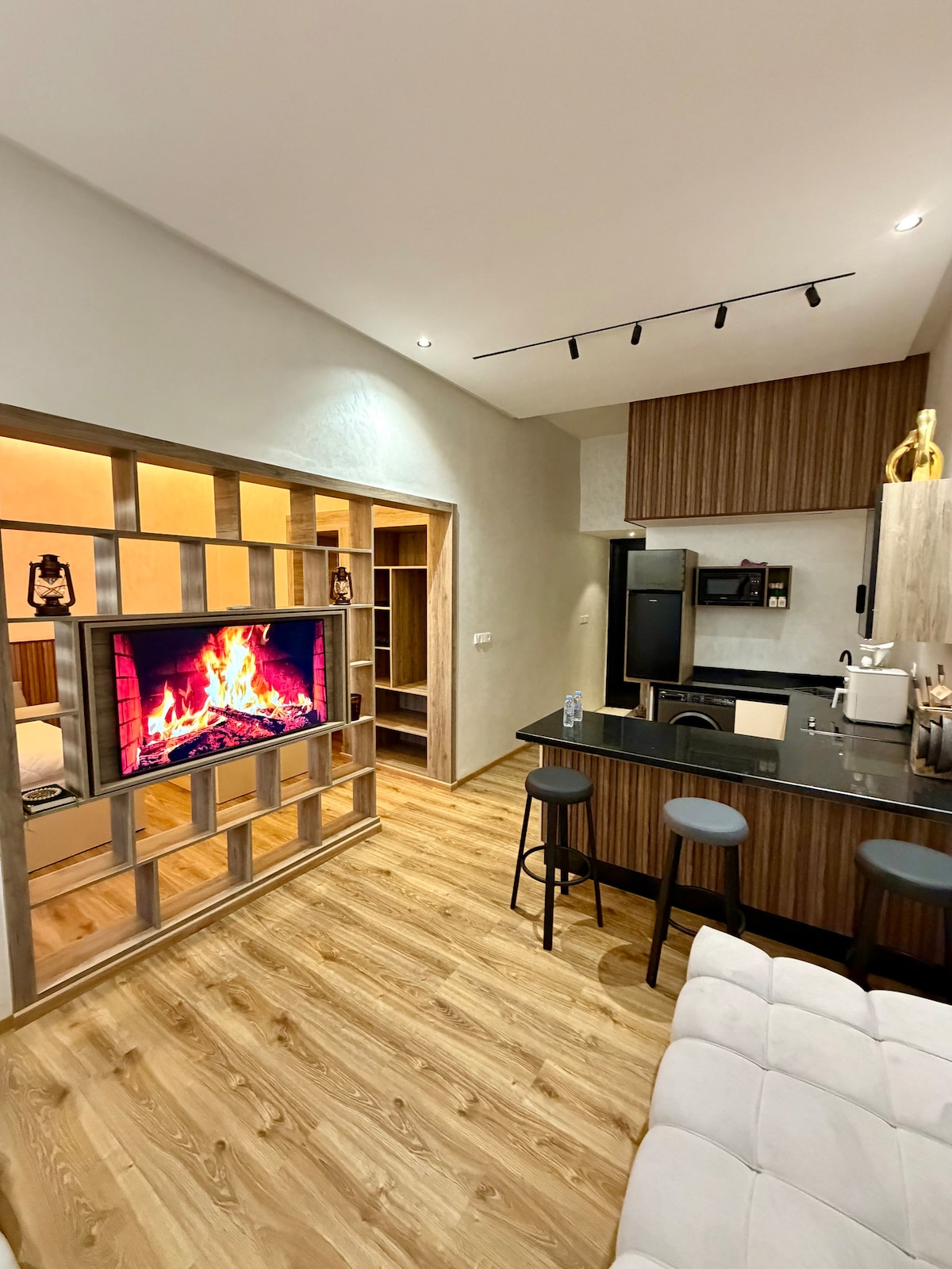 Dunes d’Or Stay – Votre porte d’entrée vers le désert, au cœur d’Errachidia 🌴 Bienvenue à Dunes d’Or Stay, un studio moderne et élégant idéalement situé au centre d’Errachidia, pensé pour les voyageurs en quête de confort, de calme et d’authenticité. Le studio offre un design contemporain aux touches chaleureuses, avec des matériaux nobles et une ambiance cosy, parfait pour un séjour touristique ou professionnel.