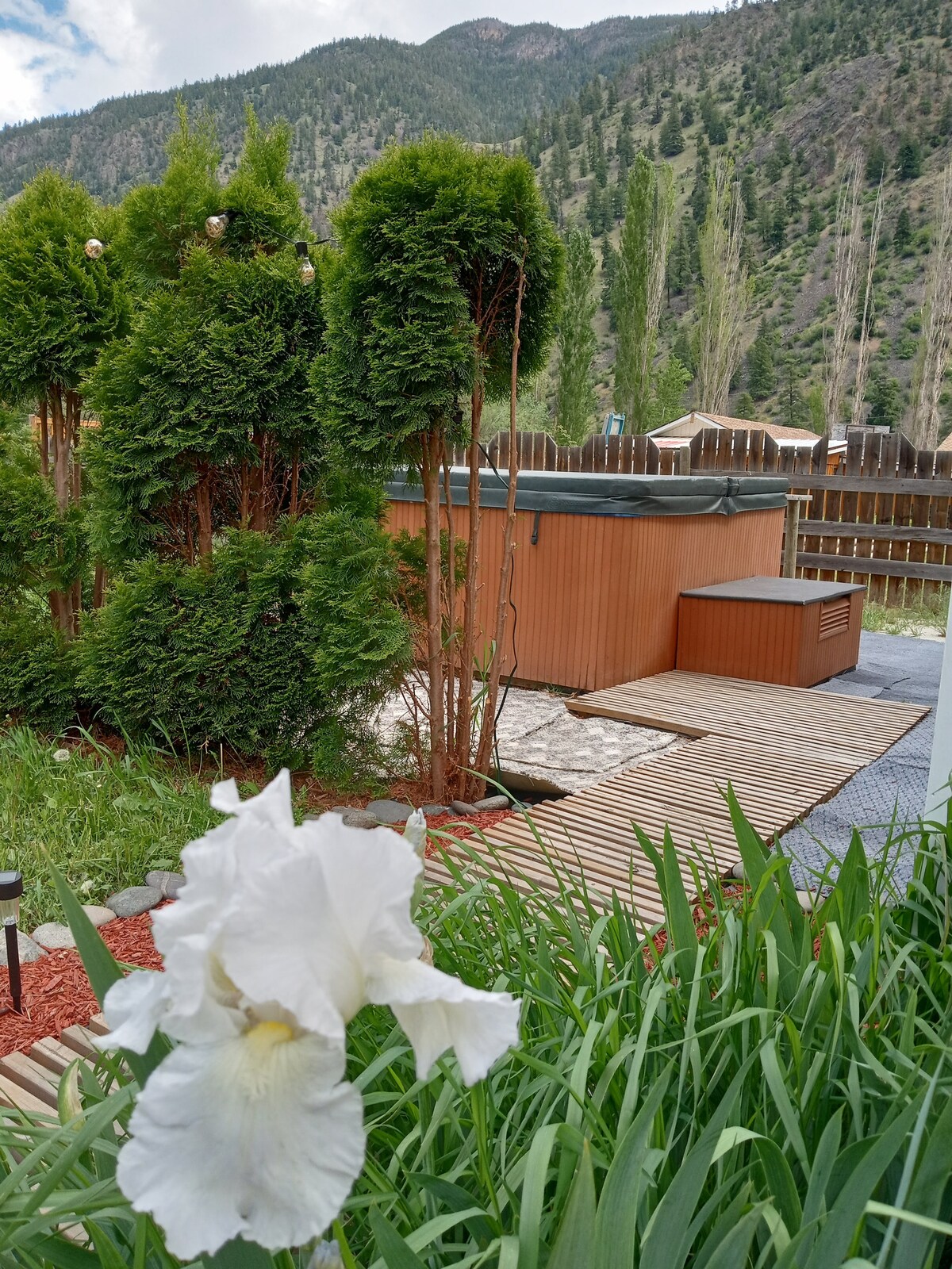 Take it easy at this unique and tranquil getaway on 1/2 acre!! Jacuzzi in the stars. Majestic Mountains surrounding Vineyards and Fruit Stands. 7 Lakes all within an HR drive. Essentials Provided. Best Rates for the area. Peachland Zipline, Loco landing Penticton Watersport Rentals at most lakes. Famous spotted lake is Cool and fishing on the dock is popular at yellow lake, also known for ice fishing in cold winter months. Fun for All! The Home has installed filter for drinking & cooking