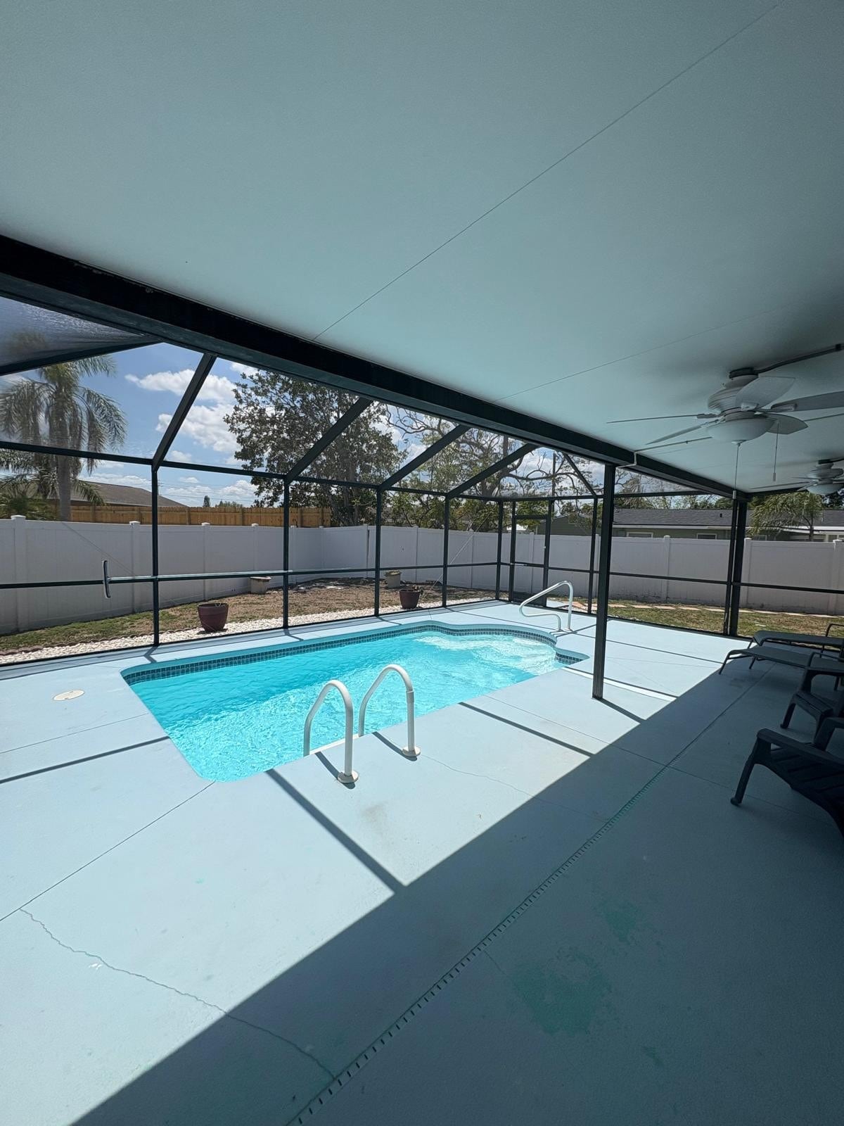 Welcome to your Waterfall House getaway! This beautiful 4-bedroom, 3-bath home features a bright open floor plan with vaulted ceilings and large windows that fill the space with natural light. The family room opens to a spacious covered lanai overlooking a screened-in pool and outdoor lounge area with a pool table for entertainment. The kitchen offers stainless steel appliances and while three additional bedrooms provide comfort and privacy. Perfect for your sunny Florida escape!