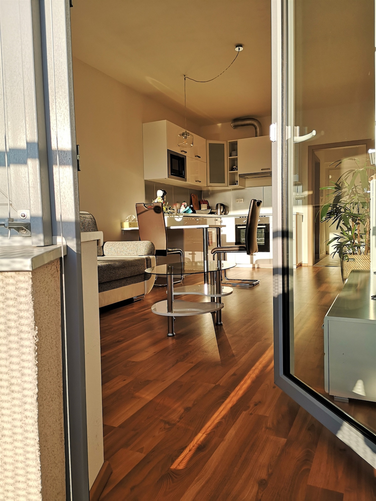 El apartamento está situado en el séptimo piso de un edificio con una hermosa vista desde todas las ventanas, gracias a lo cual el apartamento es increíblemente luminoso, soleado y tranquilo. Puede relajarse en la terraza en un cómodo sofá o en el dormitorio en una cama nueva. Los días calurosos de verano serán más agradables gracias al aire acondicionado. La cocina totalmente equipada y la cafetera Nespresso son una obviedad. A solo 10 minutos a pie se encuentra el centro de Brno. Los amantes de la gastronomía, los monumentos, los parques, los deportes y las cafeterías con estilo, que son muchos en las inmediaciones, encontrarán lo que buscan.