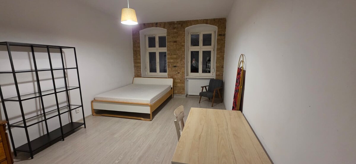 Hermoso y lujoso apartamento de estilo loft en un edificio increíble recién reformado de principios del siglo XX, sala de estar abierta con una gran cocina, dormitorio doble para 2 personas y un sofá en la sala de estar para 2 personas más, baño nuevo y moderno y un balcón. Luminoso y espacioso, ubicación tranquila, aunque a solo 9 minutos a pie de la estación principal de tren y a 18 minutos a pie del casco antiguo, paz y tranquilidad. Hay tiendas y bares cerca. Netflix. ¡Llegada autónoma hasta las 21:00! ¡Ubicación perfecta para ver el mercado navideño de Breslavia! :)