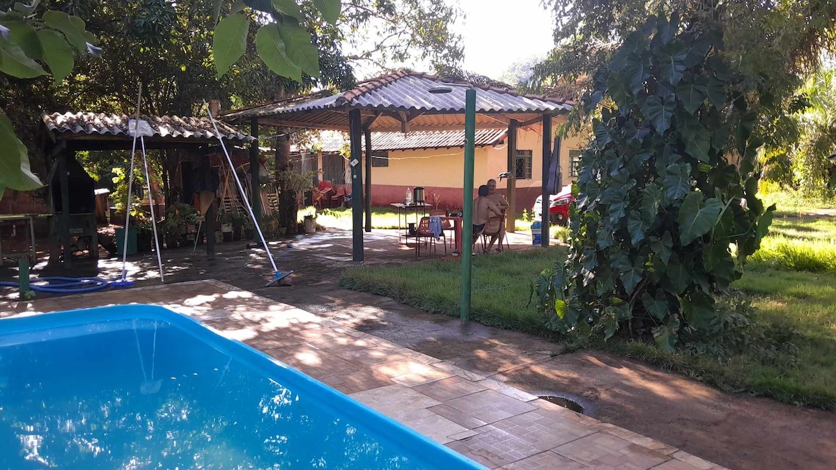¿Buscas un refugio para relajarte en medio de la naturaleza? ¡Tengo el espacio PERFECTO para ti! La granja está ubicada en Palmeiras/MS, a 1 hora de Campo Grande y a 18 minutos de Piraputanga. Contiene una casa amplia, acogedora y confortable. El área exterior cuenta con un espacio gourmet totalmente equipado, una piscina perfecta para los días calurosos y, por supuesto, hamacas para relajarse mientras lees un buen libro o tomas un vino. ¡Es en serio, no querrás irte!