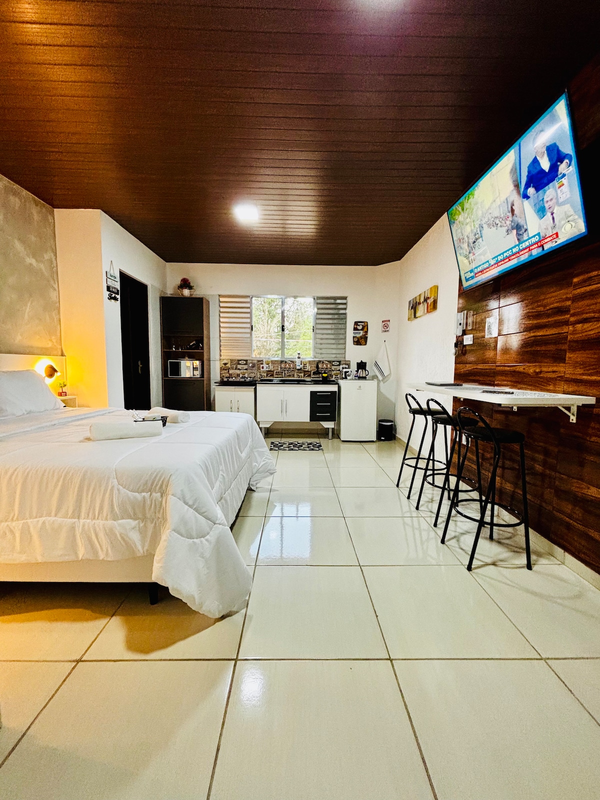 Este loft de 1 dormitorio es ideal para parejas o personas que viajan solas que buscan comodidad y seguridad, ubicado en un condominio en el centro de São Roque. A solo 10 minutos de la Ruta del Vino, ofrece fácil acceso a las atracciones locales. El espacio incluye una habitación espaciosa con una cama cómoda y ropa de cama de alta calidad, 1 sábana, 2 almohadas, 2 toallas de baño, 1 de cara y 1 colchón individual, 1 manta doble y 1 manta individual. ¡Aprovecha la oportunidad de conocer São Roque y tener una estancia inolvidable!