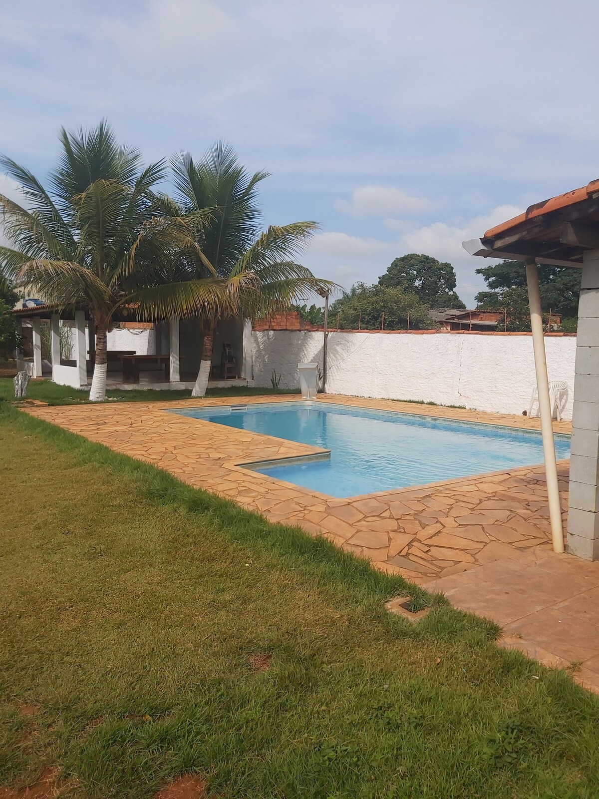 Villa con chimenea y jardín privado; lugar plano con mucha naturaleza alrededor; Disfruta de mañanas tranquilas en nuestro balcón soleado y la alegría de los momentos familiares, perfectos para un desayuno relajante con vistas al jardín y a la piscina, y disfrutando del canto de los pájaros; Alto Wall, seguridad para tu mascota; Internet wifi 480 mega de fibra óptica; Parrilla; Piscina con agua, luces; Ambiente familiar para toda la familia ; Ofrezco ropa de cama, excepto toallas de baño.