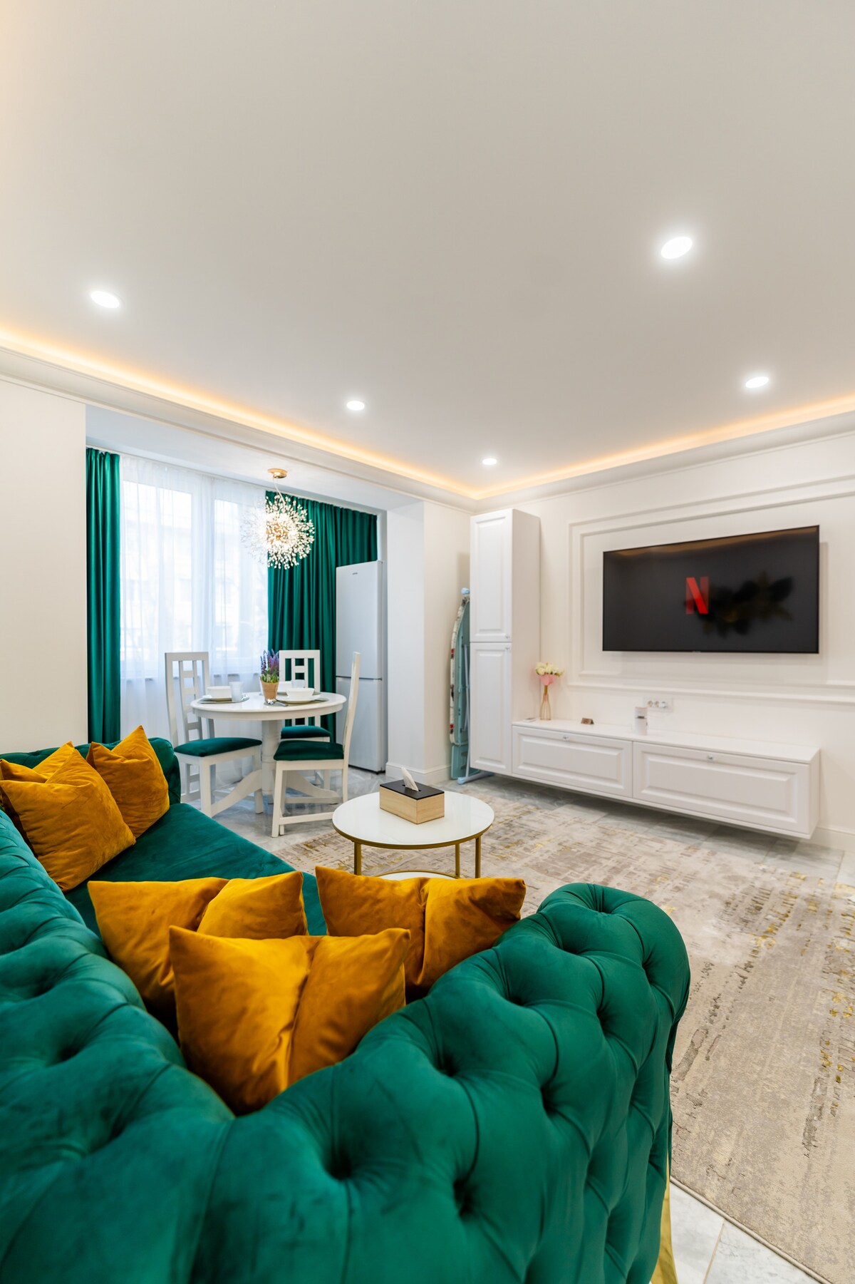 Disfruta de una escapada elegante y colorida en el corazón de Arad. Este apartamento de hermoso diseño combina el encanto retro con la comodidad moderna, ideal para parejas, viajeros solitarios o trabajadores remotos. Estarás a unos pasos de cafeterías, tiendas y lugares de interés histórico. Cama tamaño queen con colchón de alta calidad Cocina totalmente equipada con cafetera y hervidor Aire acondicionado y calefacción Televisión inteligente y wifi Baño moderno con ducha a ras del suelo Armario y plancha
