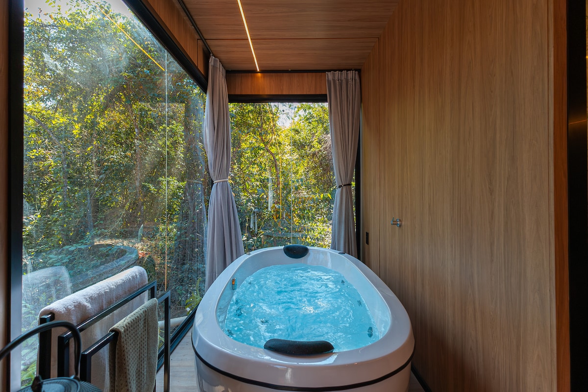 Casa Container en el bosque, un acogedor refugio donde la naturaleza y la comodidad se encuentran. Ideal para aquellos que deseen descansar y conectarse con la naturaleza. Además de toda la comodidad interior en el área al aire libre, tenemos una piscina climatizada con frente de vidrio, chimenea, terraza forestal y cancha de arena. Acceso exclusivo al Río das Almas y a un tramo del Camino de Cora. Excelente ubicación, fácil acceso y muy cerca del centro histórico de Pirenópolis @jungleboxpiri