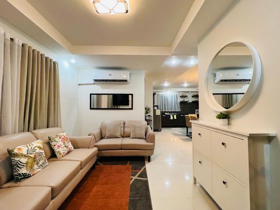This 4-bedroom house is completely air-conditioned, living room included; it has 3 bathrooms and free parking space. The kitchen has a refrigerator and is well equipped with cooking utensils, an induction cooker, a rice cooker, an electric kettle, a water dispenser, and a BBQ grill. The whole group will enjoy easy access to everything as the house is centrally located and is nestled between G Mall and Vista Mall, both of which are within walking distance.
