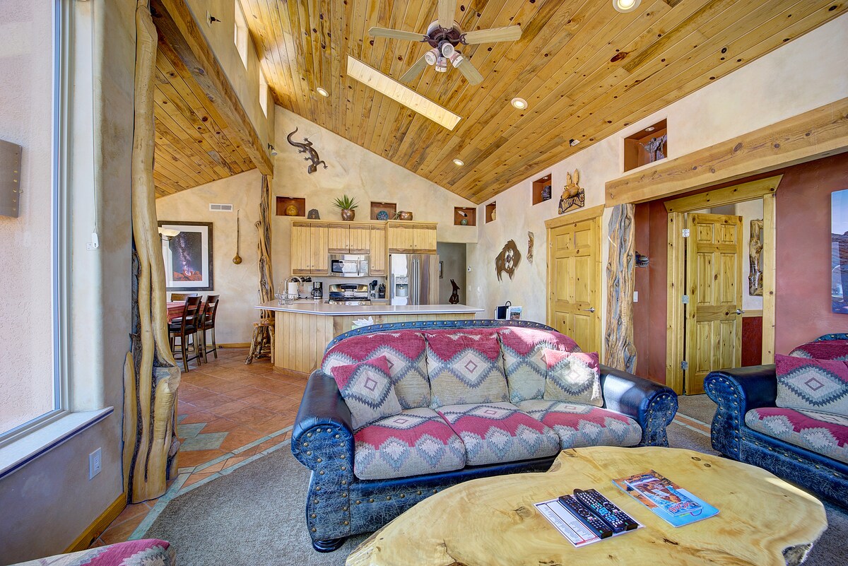 Esta casa rústica moderna recientemente remodelada de 3 dormitorios, 2 baños y medio más un loft adicional, garaje para 2 coches incluye un patio privado en condominio y se encuentra a solo 5 millas del centro de la ciudad. Con una vista impresionante de las rocas rojas y de las montañas de La Sal y fácil acceso al sendero, esta es la ubicación perfecta para tu HOV y remolques. Al final de un día lleno de aventuras, disfruta de un chapuzón en la piscina o de un chapuzón en el jacuzzi.