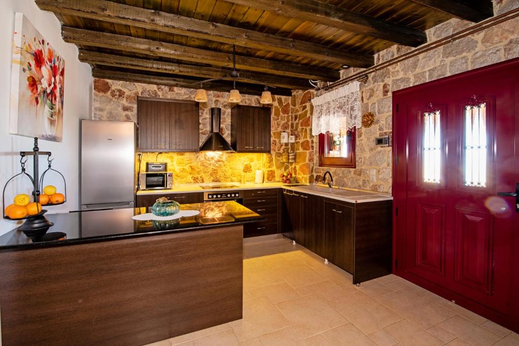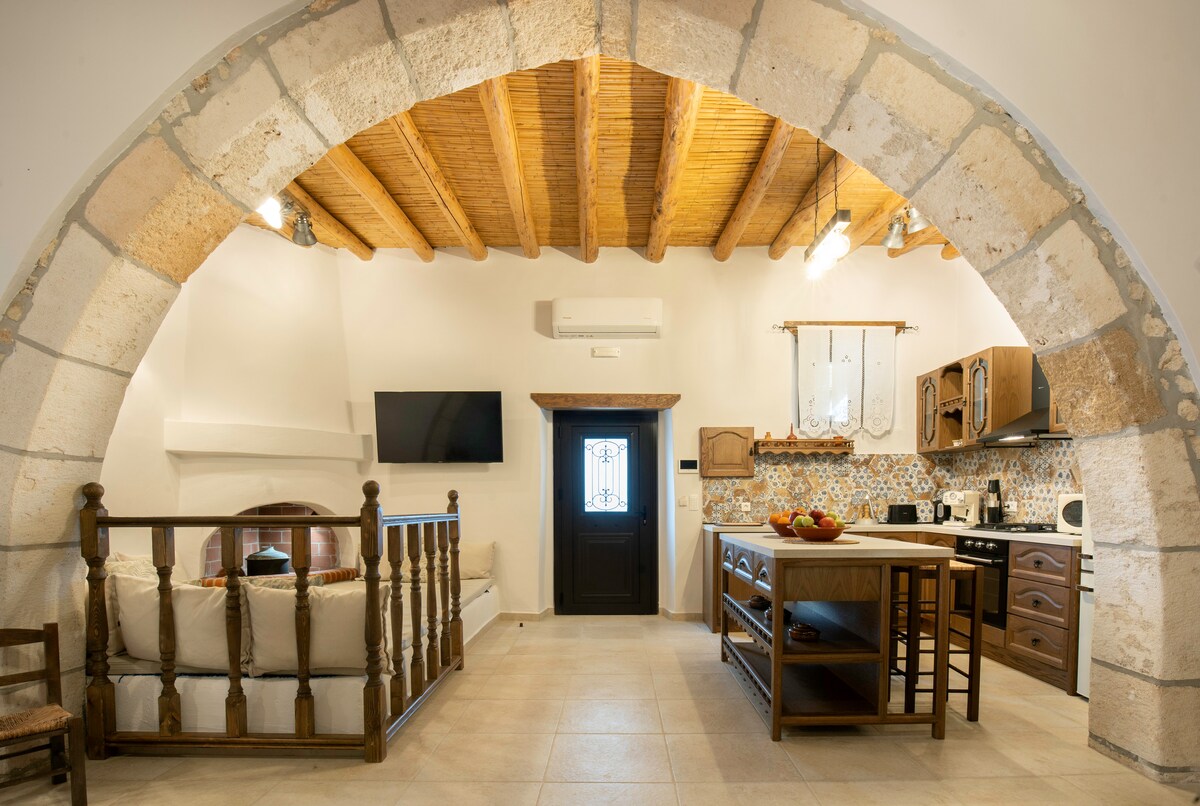"Introducing "Mareò” Traditional Retreat"! This charming house, nestled beneath Archangelos Castle in Rhodes, offers a rustic yet elegant experience. With its stone walls, exposed beams, and tiled floors, it exudes timeless charm. The well-equipped kitchen and farmhouse-style dining area are perfect for meals. Upstairs, comfortable bedrooms await, along with luxurious bathrooms. Step outside to the courtyard, where you'll find the outdoor jacuzzi with a stunning view.