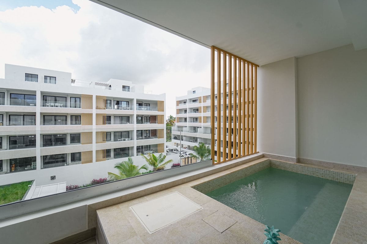 Espectacular nuevo Apartamento de lujo con piscina privada en la terraza. Un nuevo concepto de apartamentos en Punta Cana que te proporcionará confort, privacidad y seguridad para pasar tus vacaciones. Habitaciones amplias, cocina totalmente equipada, muebles de diseño, wifi de alta velocidad, check in online con la ultima tecnología. Sin duda una nueva experiencia para vivir Punta Cana de una forma diferente.