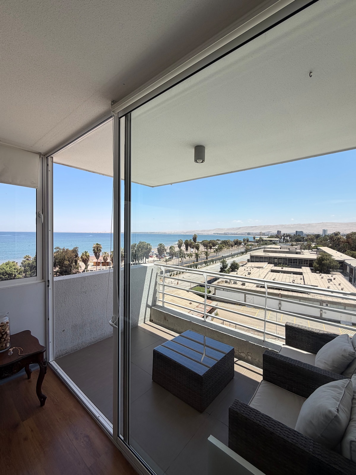 Depto nuevo con una espectacular vista al mar, situado frente a una de las mejores playas de Arica (Laucho), a pasos de restaurantes, isla del alacrán y centro histórico de la ciudad. Full amoblado con equipamiento de lujo y las mejores comodidades, 1 cama King, Tv 75”, 1 sofa/cama, amplio y cómodo sillon de cuero, cortinas black out, area de trabajo, toalla de ducha, secador de pelo, plancha de ropa, amplio refrigerador. Con piscina y estacionamiento gratis dentro del condominio.