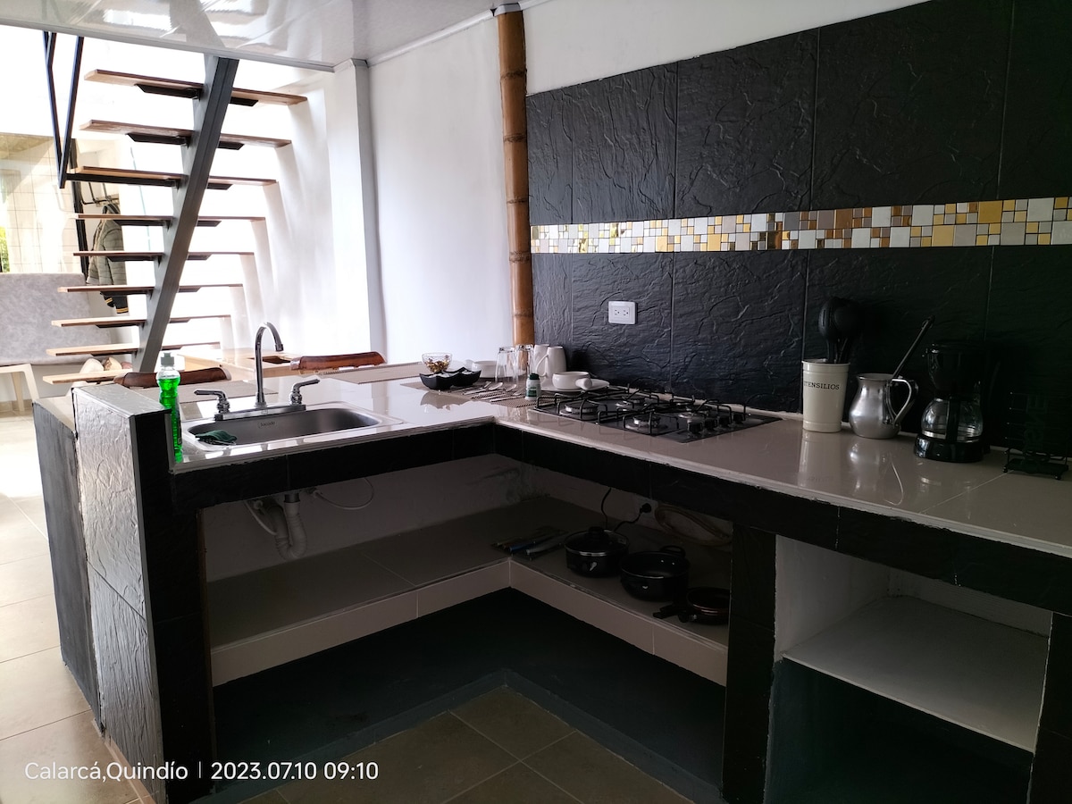 Quinta Solecito es una construcción tradicional de la región. Consta de tres habitaciones con baño privado, cocina equipada, piscina, kiosco y zonas verdes para caminar, es completamente privada e ideal para familias y personas que amen la naturaleza. Cuenta con vista a la cordillera central en una zona tranquila a solo 20 minutos de Armenia y 10 minutos de Calarcá. Está en un punto ideal para visitar el Parque del Café, Panaca, el Valle del Cócora y pueblos tradicionales de la zona cafetera.