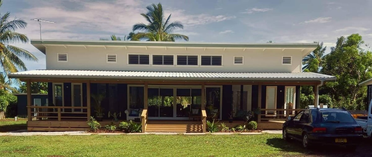 Nuestra espaciosa villa frente a la playa está a solo unos pasos de la playa. Hay una gran terraza para comer y relajarse, que tiene una vista clara del océano. El trabajo de artistas locales se presenta en la villa, proporcionando una sensación vibrante y cálida de las Islas Cook. Con el océano a tus pies, hamacas y vistas al atardecer, este es el lugar perfecto para relajarse, descansar y disfrutar de la vida isleña. Tenemos internet ilimitado (a través de Starlink) y hemos instalado un filtro UV para el agua potable.