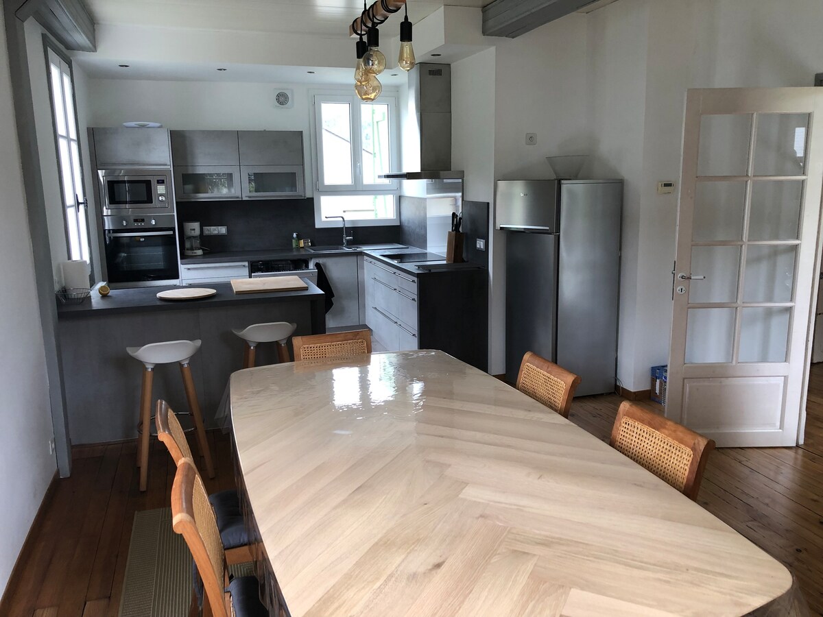 Es una casa independiente de 110m2 con doble terrasa privada de unos 60 m2. El jardin esta compartido con otra casa (posibilidad de alquilar para 4 personas mas). Se puede aparcar un coche entre las dos casas, parking à 30m. Es una casa muy luminosa y muy agradable para vivir con mucho encanto y confort. Bañera de hidromasaje, Internet, sonido bose, Canal+, canalsat. Es un lugar muy caloroso y tranquilo aunque este cerca de la carretera.