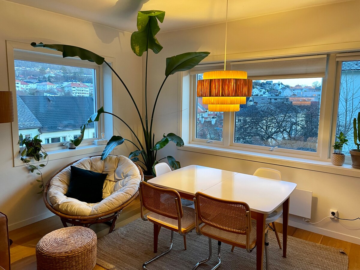 Luminoso, espacioso y acogedor, completamente reformado. Estacionamiento gratuito para autos de pasajeros en la entrada de la casa. Con una ubicación céntrica, cerca del tren y el autobús de la ciudad. Justo al lado del Hospital Haukeland, el estadio Ulriken y Brann, el University College y el dentista. Tienda de conveniencia a 5 minutos a pie. Restaurantes cercanos y distancia a pie al centro de la ciudad, a unos 25 minutos.