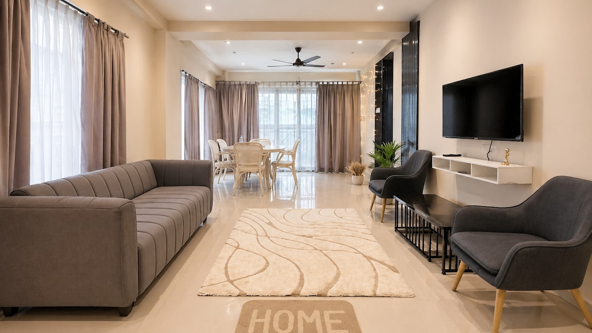 ¡Trae a toda la familia a alojarse en un elegante piso de 3 dormitorios en Tezpur! Cada habitación tiene un baño adjunto, con una acogedora sala de estar y una cocina totalmente equipada. Disfruta de aire acondicionado, wifi, agua RO, aparcamiento gratuito (confirma con el anfitrión), además de comedor en la azotea, barbacoa y equipo de ejercicio. Apto para familias y dirigido por veteranos. A pie al aeropuerto/estación de tren. Base perfecta para Kaziranga (58 km) y Arunachal (56 km). Reserva toda la planta o una sola habitación (sala de estar/comedor/cocina compartidos). Este gran lugar con mucho espacio para divertirse.