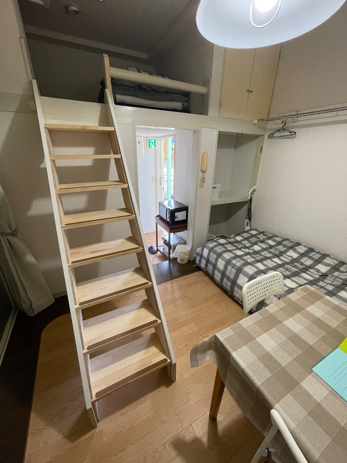 Un pequeño apartamento tipo estudio con muebles y artículos de uso diario. Las 2 estaciones más cercanas son Asakadai de la línea Tobu-tojo y JR Kita-asaka. Ubicado en los suburbios a poca distancia del centro de Tokio, tiene que investigar una compleja red de trenes y caminar más, se espera un tiempo de viaje adicional de 20-30 minutos por día en comparación con un hotel de la ciudad. A cambio, puedes ahorrar en gastos de alojamiento.