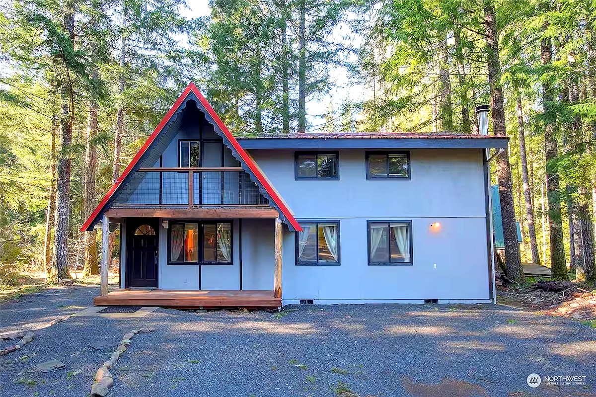 Bienvenido a nuestra cabaña rústica pero moderna en Ashford, a solo 5 minutos de la entrada del monte Rainier. Disfruta de una estancia acogedora con chimenea de gas, cocina actualizada, cama tamaño queen, loft con cama doble y sofá cama. Relájate en el jacuzzi, conéctate con wifi de alta velocidad y carga tu vehículo eléctrico con nuestro cargador de nivel 2. ¡Se admiten perros! Relájate junto a la chimenea de gas en el interior o reúnete alrededor de la hoguera al aire libre. Escápate a la naturaleza y crea recuerdos duraderos en nuestra encantadora cabaña. ¡Reserva tu alojamiento ahora!